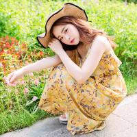 樹葉圖樣側綁帶不對稱設計細肩洋裝
